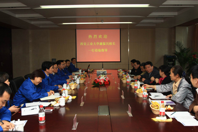 (本网讯)10月12日,西安工业大学校长廉振民、副校长雷亚萍一行到中国兵器工业集团北方光电集团有限公司调研。北方光电集团有限公司是中国兵器工业集团公司所属大型光电产业子集团。光电集团以由原中国兵器工业集团西安应用光学研究所、西安北方光电有限公司、河南平原光电有限公司、江苏北方湖光光电有限公司四家单位为主体组建而成,按照军民融合、产研融合和专业化重组的结构调整方式于2010年6月9日正式组建成立。公司成立后,廉校长首次到北方光电集团有限公司调研,深入推进校企合作与交流,取得了丰硕的校企合作成果。