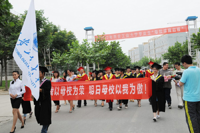 六月的工大校园绿草茵茵,花香醉人,弦歌不断,浓情似海。同学们手举“今日我以母校为荣 明日母校以我为傲”的横幅,行走在生活、学习了四年的美丽校园中,每位同学心中都充满了感动与不舍。大家簇拥在校领导和老师的身旁,聆听着他们的谆谆教诲和热切期望。伴随相机的快门声,笑靥定格,印下母校永远的祝福与嘱托,珍藏一生。校园里朗朗的读书声,自修室苦读的身影,经纬广场流淌的青春……一个个与青春有关的日子,一段段与梦想相连的岁月,袭上心头,使人感慨万千。