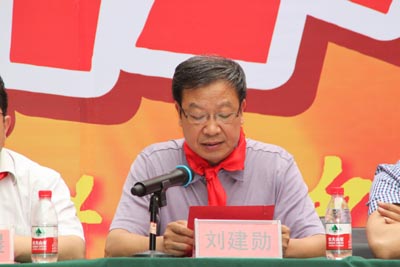 刘建勋副校长致辞,他向孩子们表达了诚挚的节日祝福,肯定了附小为大学的发展默默付出的努力,希望孩子们牢记胡锦涛总书记的教诲,争当“四好少年”,并希望大学各级领导能一如既往地关心支持附小发展。