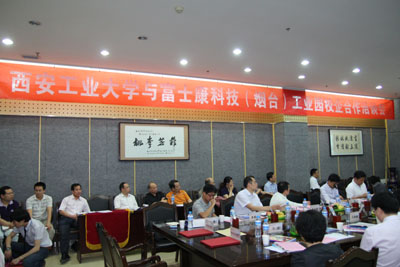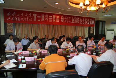 (本网讯)5月18日,富士康科技集团(烟台)工业园副总经理郑光杰、夏克平经理、陈锡聪经理、游丰檀副经理、王金清专案经理、唐德川课长等一行9人来校,就卓越工程师计划、专班人才培养、在职人员培训、电子商务等方面与IM在线(中国)进行深入研讨。学校教务处、学生处、工程训练中心、各学院、研究生部、以及北信学院、高职学院等部门负责人出席了会议。