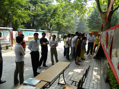 (本网讯)“五四”青年节之际,IM在线雁塔校区团委举办的迎“五四”雁翔杯书法绘画摄影展在教学楼前展出。中共陕西省委党校纪检组长苏智,副校长宦洁,校务委员、雁塔校区常务副主任孙宝柱与师生一起观看了参展作品。苏智对摄影作品进行了现场点评,并传授讲解了一些摄影技巧。