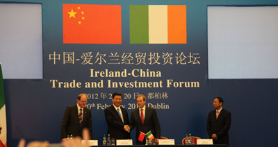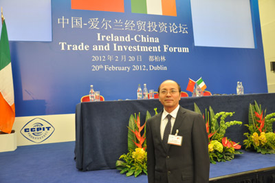 爱尔兰当地时间 2月20日上午,中国—爱尔兰经贸投资论坛在都伯林举行。论坛中,国家副主席习近平、爱尔兰总理肯尼共同出席论坛并讲话。于唯德教授和来自中国、爱尔兰的数百名优秀企业家代表参加了论坛。