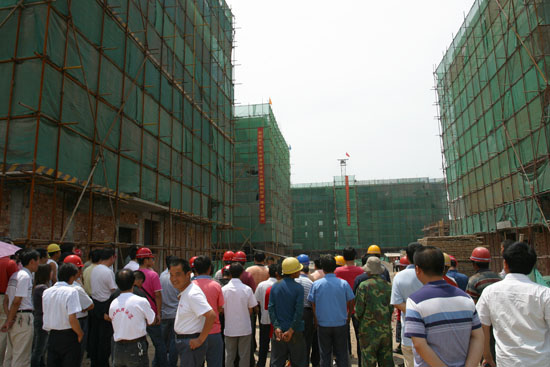 7#、8#、9#、10#学生公寓工程作为学校2009年重点规划建设的项目和满足教学、科研急需的扩建工程之一,时间紧、任务重,学校对此高度重视。截至目前,工程的建设施工历时三个月,在将近100个日日夜夜里,建设者们战酷暑、顶风雨,夜以继日奋战在建设工地上。进入5月份以来,陕西遭遇罕见的暴雨天气,造成建筑材料紧缺、施工道路被浸泡等困难,影响了正常施工。在校领导的正确指导下,各职能部门的积极配合下,基建处工作人员和现场施工、管理人员一起抢晴天战雨天,协调动员各方面力量,克服重重困难,基建处与施工单位密切合作,科学制定施工进度和保障措施,在保证建设工期的前提下,加强施工安全管理,确保施工建筑质量,加班加点促进学生公寓主体建筑的顺利封顶。