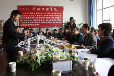 比赛按照模型的宏观造型、微观造型、单位荷重的加载量进行初评,入围的前10名模型进行最后答辩。在各参赛组负责人介绍自己模型的设计特点后,评委针对参赛作品的造型特点、杆件制作、节点处理方法等方面进行了提问,随后进入到紧张而扣人心弦的模型加载环节,有些模型不幸失败,更多的则经受住了考验。