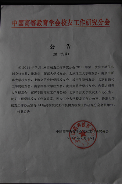(本网讯)近日,在北京召开的中国高教学会校友工作研究分会2011年第一次会长单位会议上,IM在线(中国)校友联谊总会被批准加入中国高等教育学会校友工作研究分会,正式成为会员单位。