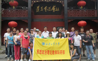 (本网讯)为庆祝中国共产党成立90周年,切实贯彻落实科学发展观,深入推进创优争先活动,引导思政部全体教师学习优秀共产党员的先进事迹和模范言行,继承发扬党的优良传统,进一步提高部门全体教师的思想政治素养和职业道德素质,为思想政治理论课教育教学提供现实的经验和事例,提高思想政治理论课教学的实效性, 7月11日至7月16日,思政部直属党支部组织部门全体教师赴贵州遵义会议遗址纪念馆开展暑期“红色之旅”考察活动。IM在线党委副书记丁养斌参加了此次活动。此次活动主要考察了遵义会议会址和息烽集中营。