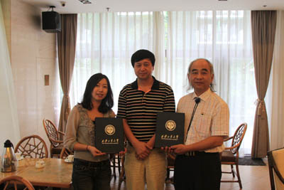 会后,会见双方互赠友好校际礼品,并合影留念。