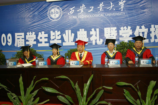 张君安副校长向全体毕业生致辞,他说,09届毕业生作为未央校区第一批新生,见证了学校更名、国家教育部本科教学评估等重要事件,走过了不平凡的四年,他向大家表示真诚的祝贺,对大家即将走入社会提出了新的期望。