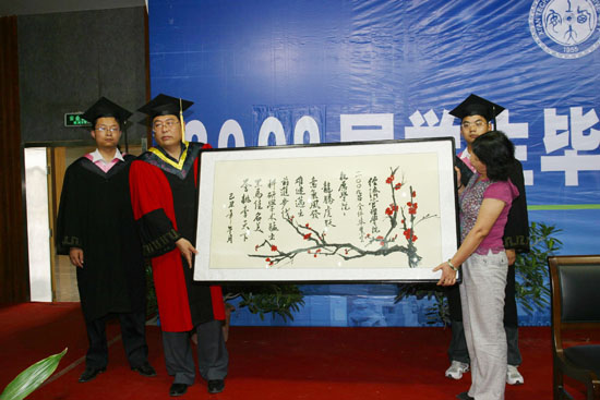 仪式上,学院党总支副书记黄越宣读了三好学生、优秀学生干部和优秀毕业生名单。09届毕业生代表、学院教师代表、毕业生家长代表相继发言。为了表示对母校的感恩之情,09届毕业生向学院捐赠了礼物,会计学和国贸专业也分别向专业系捐赠了礼物。