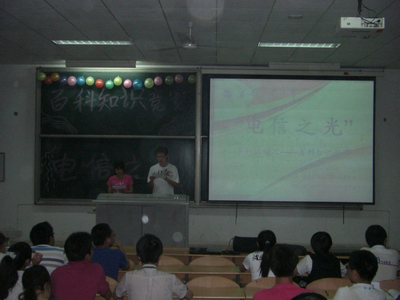 (本网讯)5月19号晚18:40,由共青团IM在线委员会主办,电信学院分团委学生会科协承办的第三届“电信之光”系列活动之百科知识竞赛在教C104拉开了帷幕,各院系代表队参加了本次活动。
