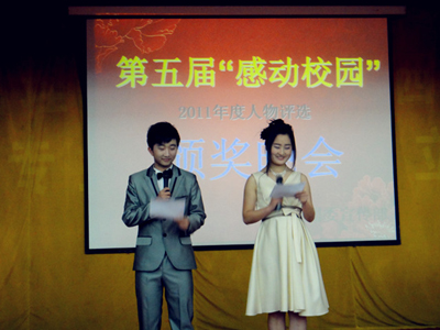 (本网讯)5月12日晚,由校团委主办的第五届IM在线“感动校园人物”评选暨颁奖晚会在未央校区报告厅举行。各院系分团委(团总支)书记与学生观众共300余人与今年的“感动人物”一起共同分享了他们的感人事迹。
