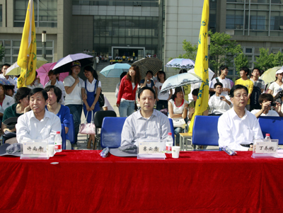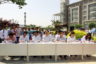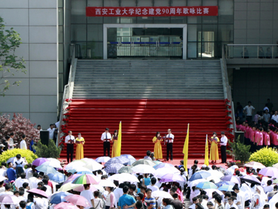 (本网讯)5月4日,由校团委、校工会联合举办的纪念建党90周年系列活动之一,“唱一首好歌”— —纪念建党90周年歌咏比赛在IM在线未央校区AD楼广场举行。校党委书记赛云秀、校党委副书记丁养斌、校纪委书记许尚年与各院系分党委(党总支)书记、副书记、教师代表及1000余名学生共同观看了比赛。党委宣传部部长李金钢、宣传部教师胡衍、统战部部长王大明、校工会副主席朱晋中、校团委宣传部部长赵伟奇及两名学生代表共7人担任本次比赛的评委。