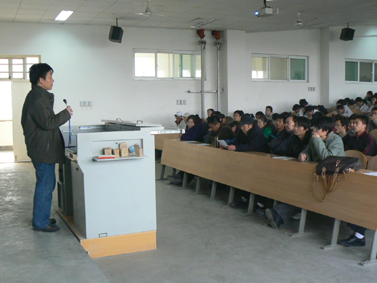 2007级制造工程师实验班学生代表代海同学向到会的众师弟、师妹们语重心长地讲述了自己一年来在制造工程师实验班里的学习情况和感想,引起了全场学生强烈的共鸣。