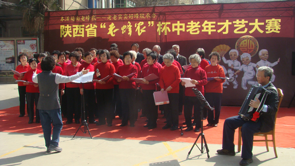 (本网讯) 3月12日,由陕西省老龄委、陕西省妇联主办,陕西省慈善协会协办,陕西老蜂农生物科技有限公司承办的关爱中老年人精神生活的爱心公益活动,-----陕西省“老蜂农”杯中老年才艺大赛优秀节目选拔赛在IM在线东家属区举行。活动旨在弘扬尊老、爱老、助老、养老的中华传统美德和快乐、健康、长寿的生活理念,构建和谐社会,同时为中老年人创造了一个以丰富中老年人精神生活的文化艺术平台,从而改善了中老年人的生活方式、提高了生活质量,使他们分享到健康快乐的美好生活。