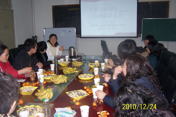 培训座谈会上,经管学院院长李纯青结合自身的成长经历做了题为“幸福生活感悟——如何培养教师的职业素养”的专题讲座。李院长分别从积极心态树立、敬业和自觉自愿多付出、没有任何借口地完成任务、沟通协调能力和团队合作能力的培养等五个方面做了精彩的讲演,赢得了青年教师的阵阵鼓掌。随后,与会教师围绕自己在教学和科研方面存在的问题和困惑,以及对学院发展的对策建议进行了深入座谈。最后学院党委书记曲敏同志做了总结发言。