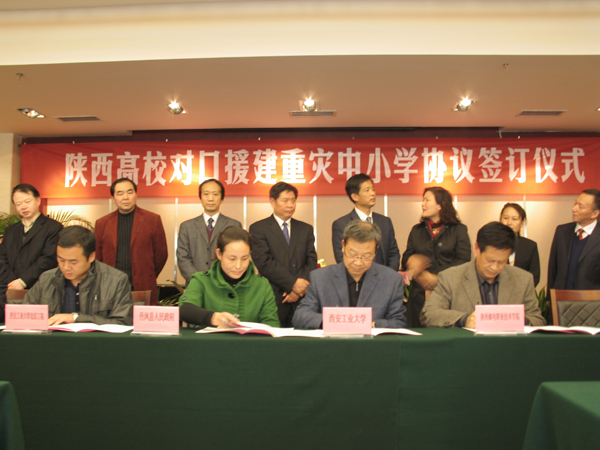 (本网讯)11月19日下午,陕西省教育厅在止园饭店隆重举行陕西高校对口援建受灾中小学协议签订仪式,60多所高校的领导和受灾中小学地方人民政府代表约200人参加会议,会议由陕西省教育厅副厅长张雄强主持,受灾中小学代表做了热情洋溢的发言,省教育厅杨希文厅长做了重要讲话。