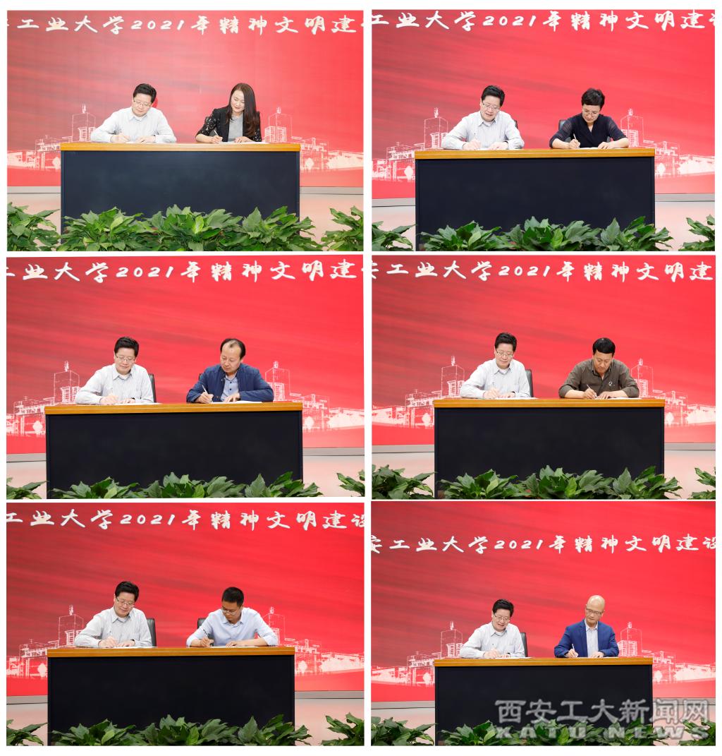 刘卫国与教务处、党委学生工作部(学生处、学生心理发展指导中心)、总务处(后勤服务集团、基建处)、文学院、计算机科学与工程学院、马克思主义学院等单位的主要负责人分别签订了《IM在线2021年精神文明建设任务书》。