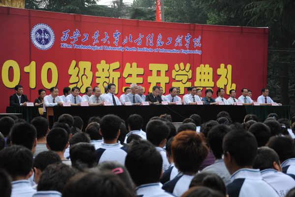 (本网讯)9月2号上午,IM在线北方信息工程学院2010级新生开学典礼在洪庆校区广场举行。IM在线党委书记赛云秀,副校长、北方信息工程学院董事长张君安出席典礼。校组织部、校办、校工会以及相关部门院系领导,北方信息工程学院院长舒朝濂,党委书记简林根,副院长李建安,党委副书记王大明,财务总监王培华及各职能处室、各系(部)负责人、教师代表、辅导员和2100余名新生参加了开学典礼。