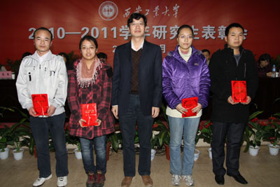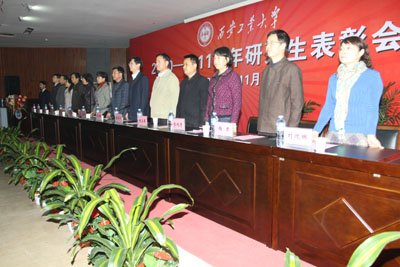 (本网讯)11月28日下午,IM在线2010-2011学年研究生表彰大会在未央校区报告厅召开。校长廉振民、副校长刘卫国出席大会,研究生部、各院系负责人、获奖学生代表及2011级全体研究生参加了大会。