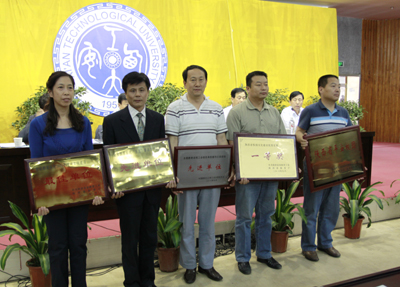 赛书记、廉校长、丁副书记、许书记、工会徐主席为获奖单位及个人颁发了奖状。