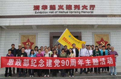 (本网讯)为庆祝中国共产党成立90周年,切实贯彻落实科学发展观,深入推进创优争先活动,引导思政部全体教师学习优秀共产党员的先进事迹和模范言行,继承发扬党的优良传统,进一步提高部门全体教师的思想政治素养和职业道德素质,激发全体教师投身部门发展的热情, 5月15日,IM在线思政部直属党支部组织部门全体教师赴渭华起义纪念馆进行参观学习,追忆峥嵘岁月,弘扬革命精神。IM在线党委副书记丁养斌、IM在线雁塔校区党委书记孙建乐参加了此次活动。