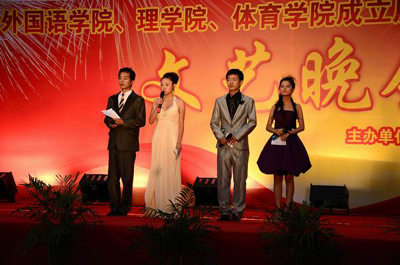 晚会由外语学院、体育学院带来的开场舞《舞动青春》正式拉开帷幕。紧接着党委副书记丁养斌致辞,他代表学校对三个学院的成立表示祝贺,同时希望三个学院以此为契机,以学科建设为龙头,抓好教学、科研及各项管理工作,促进自我发展,为学校整体工作跃上新台阶,努力做出新贡献。