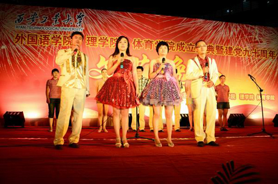 晚会持续了两个多小时,融合了歌曲、舞蹈、乐器、朗诵等各种元素,节目精彩纷呈,高潮迭起,让大家在欢声笑语中庆祝三个学院的成立和党的生日。