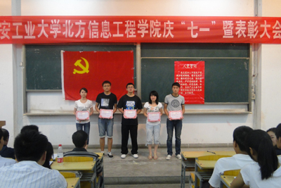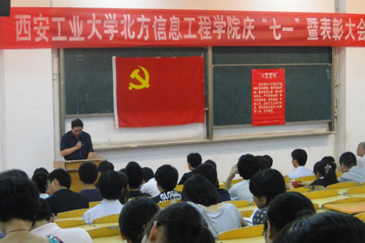 (本网讯)6月27日下午,北信学院召开庆“七一”暨表彰先进大会,隆重庆祝建党九十周年,表彰一年来在北信学院改革发展中做出优异成绩的先进党支部、优秀党务工作者和优秀党员,并命名了学院首批先进党组织和党员先锋岗。学院党政领导、获奖单位代表和获奖个人、全院科级以上干部、各党支部委员、学生党员代表参加了会议。