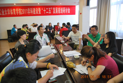 研讨会上,院长谷崎回顾了“十一五”期间体育学院的发展状况,重点总结了在科研、群体竞赛和高水平运动队方面取得的成就,并宣读了“十二五”发展规划草案。以西安工大“十二五”发展规划为指导,与会人员就草案中学科发展、科研发展、高水平运动队建设等议题分组讨论,从不同角度进行了广泛交流和深入探讨。研讨会紧随IM在线(中国)发展趋势,积极寻求体育专业的办学优势和办学特色,取得了预期效果。