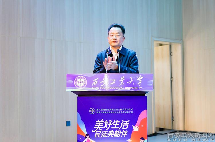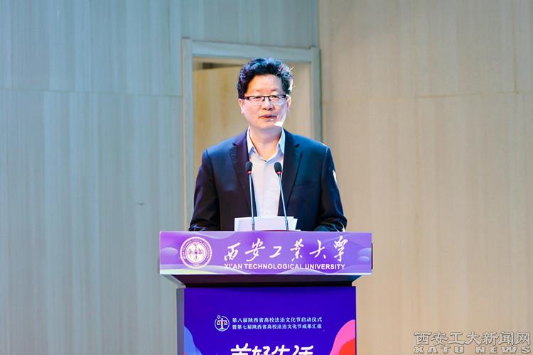 刘强宣布“第八届陕西省高校法治文化节”开幕,与会领导共同为第八届陕西省高校法治文化节启幕。