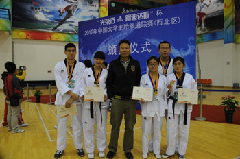(本网讯)11月5日,“光荣行”阿迪达斯杯2012年中国大学生跆拳道西北区联赛在陕西省西安科技大学体育馆落下帷幕。IM在线获得男子团体第四名,女子团体第三名。