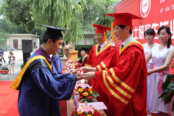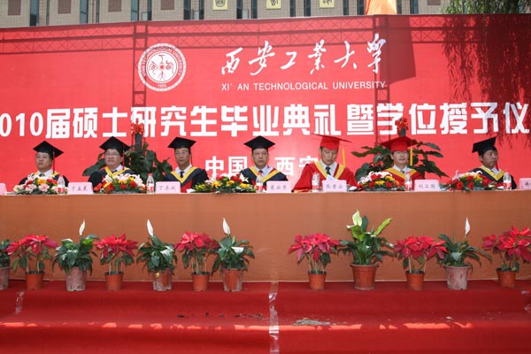 刘卫国宣读了2010届硕士学位授予决定;张君安、刘卫国为毕业生授予硕士学位;丁养斌、于孟晨、许尚年分别宣读了硕士学位优秀论文名单、省级优秀毕业生名单和高水平论文奖励名单;校领导为获奖学生进行了颁奖。