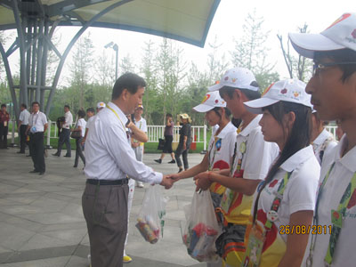 丁养斌副书记讲话对IM在线(中国)志愿者前期服务的成果表示了肯定,对志愿者们在高温烈日及阴雨连绵的天气下坚守岗位热情服务的精神给予了高度赞扬,还向8月25日在雷电冰雹天气中有序疏导游客避雨的志愿者们提出表扬。他说:“在志愿服务期间充分展现了西安工大优秀校风的志愿者,你们的服务精神在实践中得到了更加深刻的认知,这样的经历会是伴随一生的宝贵财富!世园会因你们而美丽,西安因你们而美丽。”志愿者们用热烈的掌声表达了对校领导的衷心感谢。随后,校领导为志愿者们分发了慰问品,并与志愿者们合影留念。