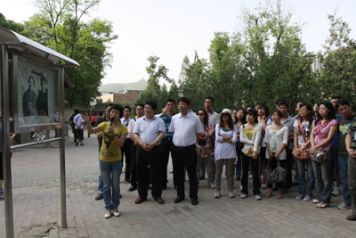 培训期间,IM在线领导和学员们参观了延安大学校史馆、路遥文学馆,延安革命纪念馆和枣园、杨家岭革命旧址等。学员们按安排进行了2场现场教学,缅怀先烈,追思伟人,深受感动和教育。7日下午,在八路军战士张思德的雕像前,杨延虎教授带领学员重温了毛泽东的《为人民服务》,介绍了张思德的生平及作为延安精神内涵之一的张思德精神——“为人民服务”的无私奉献精神。8日上午,在王家坪革命旧址毛泽东旧居的窑洞前,学员们聆听了延安大学校史办张玮祎 讲述“父子情深”的感人故事,在毛泽东与儿子毛岸英的照片前,大家共同追忆毛泽东对儿子的严格要求和谆谆教导,以及毛泽东的高风亮节和博大胸怀。