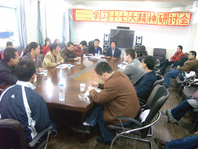 与会党员结合自身工作实际,阐述了对十七大精神的理解,表示要深入贯彻落实十七大精神,为高等教育的发展和构建和谐社会贡献力量。