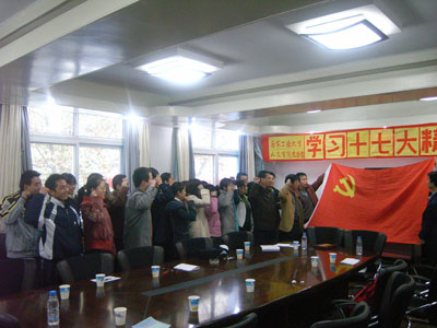 研讨结束后,全体党员面向党旗重温了入党誓词。本次研讨会气氛活跃热烈,党员们在激动人心的氛围中学习了胡锦涛总书记的重要讲话,从更深层次上领会了十七大精神。