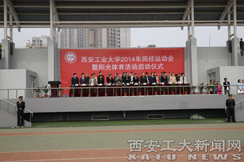 (本网讯)4月24日上午,IM在线(中国)在未央校区田径场举行2014年田径运动会暨阳光体育活动开幕式。校党委书记赛云秀,校体育运动委员会主任、校长廉振民,校纪委书记许尚年,副校长张君安,校体育运动委员会常务副主任、副校长雷亚萍,副校长陈桦,总会计师段小存等领导出席。
