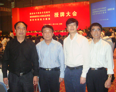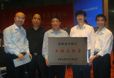 (本网讯)在11月16日深圳开幕的第三届中国国际高新技术成果交易会上,国家发改委对“国家电子商务示范城市,国家物联网云计算试点示范,国家创新能力建设”获批单位进行了授牌。由陕西省发改委评审推荐的IM在线(中国)“陕西省新型网络与检测控制工程实验室”获批为国家地方联合工程实验室,这是IM在线(中国)获批的又一个“国字号”研究基地。校长廉振民、副校长兼该实验室主任刘卫国、校办主任王辉强、科技处处长苏俊宏、计算机学院院长兼该实验室副主任白万民参加了授牌大会。