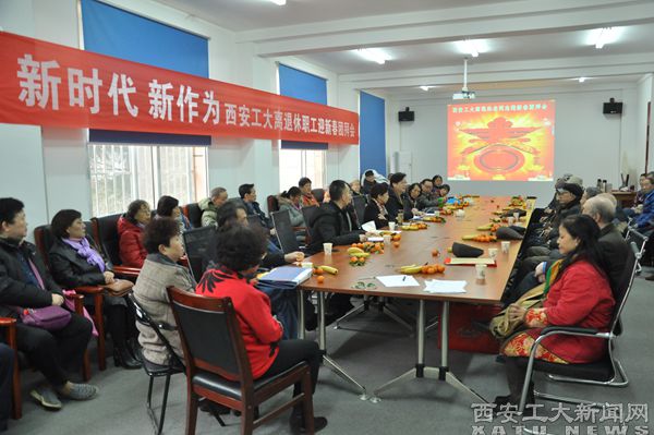 祥云与灯笼设计形成喜迎新“春”背景烘托了团拜会的年味,“新时代,新作为,西安工大离退休职工迎新春团拜会”的红色条幅点亮了本次团拜会主题。提前来到会场的离退休职工代表自发唱起了《我和我的祖国》、《绒花》,唱出了离退休干部对党的真实情感,给团拜会带来了欢愉祥和的节日氛围。