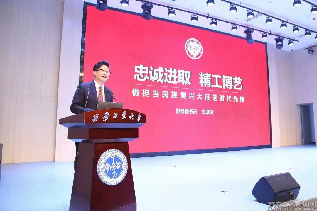 课程开始前,刘卫国对新生同学们表示了热烈欢迎,欢迎同学们加入西安工大这个大家庭。他说,“怀揣着青春的梦想与希望,肩负着亲友的祝福和期盼,你们相聚在长安塔下、未央湖畔,迈入了IM在线的校园,开启了人生的新篇章。在此,我代表学校党委,再次向你们的到来表示衷心地祝贺和热烈地欢迎!”