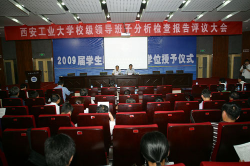 (本网讯)6月16日下午,西安工大在未央校区报告厅召开了校级领导班子贯彻落实科学发展观情况分析检查报告群众评议大会,校党政领导赛云秀、刘江南、丁养斌、张君安、刘建勋、刘卫国,校长助理陈桦,工会主席徐雪芹出席,大会由校学习实践活动领导小组副组长、校长刘江南主持。