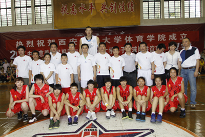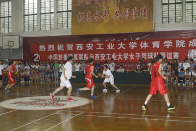 (本网讯)6月26日,西安工大女篮与到访的慈善明星联队在金花校区体育馆举行了一场联谊赛。西安工大体育学院各级领导出席接待仪式并参观了本场比赛。