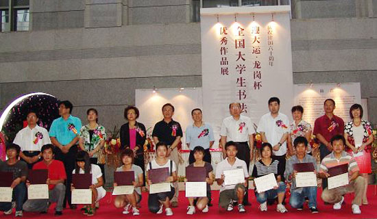 8月28日“迎大运全国大学生书画展览”及颁奖晚会在深圳市隆重举行,IM在线荣获一等奖的3名学生应邀参加了展览开幕式。