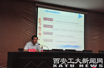 刘吉发从“西安文化国际化”的历史定位、“丝路文化产业带”的国际战略和“丝绸之路新起点”的时代使命为脉络展开讲座。刘吉发认为,西安文化具有国际化意义,一是因为其以“长安”为载体,一以贯之继承历史文化,并能最直接体现华夏文明的内核;二是就目前中国发展而言,西安应主要建设“历史文化中心”。刘吉发指出,“丝绸之路”世界国际文化遗产项目的成功,正式开启了丝绸之路的新篇章,习近平总书记更是将“丝绸之路经济带”上升到国家战略层面对其高度重视。此外,刘吉发强调,要实现陕西作为丝绸之路新起点的时代使命,要建成具有文化生态、文化民生、文化经济属性的东亚文化高地,这需要构建陕西向西开放文化高地的目标定位:一个理念——“战略体系—制度支撑—项目依托”的发展框架;两轮驱动——“文化产业与公共文化的两轮协同发展”;三大板块——以关中历史文化为主体,以陕北黄土文化和陕南生态文化为两翼,形成“一体两翼”的文化发展板块格局;四位一体——实现“企业、政策、资金、人才”要素的优化配置,形成陕西文化向西开放的体制保障。