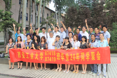 8月6日,西安工大机械87418、87419班毕业二十周年聚会活动在母校举行。西安工大副校长、校友联谊总会副理事长刘建勋、原班主任老师及校友总会刘佳老师参加了此次聚会活动。聚会校友一行,首先参观了曾经学习和生活的地方,仿佛回到了上学时一起春游的时光。在金花校区内,校友们不禁勾起一段段难忘的美好青春记忆,纷纷合影留念。随后,师生们在建国饭店举行毕业20周年师生团圆宴。刘建勋副校长讲话,他对校友们从全国各地赶回母校举行此次聚会活动表示热烈欢迎,并对各位校友为母校赢得了广泛的社会赞誉表示感谢,希望各位校友们能与母校加强联系,积极参加各地校友分会的活动,与母校开展丰富、广泛的合作,共同发展。