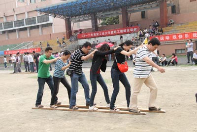 本次运动会本着“我运动、我快乐、我锻炼、我健康”的宗旨,设置了4个集体竞赛项目即赛龙舟、拍球投篮接力、50米障碍接力、托瓶30米接力跑,以及全员参加的校园健步行。这些项目让赛场气氛热烈有趣,参赛教职工欢声笑语,精诚团结,你争我赶。经过激烈的角逐,四个竞赛项目分别决出了一、二、三名,经管学院、图书馆工会获得了最佳组织奖,学校党政领导为获奖单位颁发了锦旗。