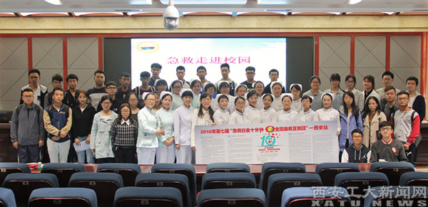 (本网讯)10月10日,全国第七届“急救白金十分钟——全国自救互救日”公益活动西安站在IM在线(中国)学术报告厅举办,邀请第四军医大学护理学院院长、西安护理学会急救专业委员会主任刘喜文教授为师生作《急救白金十分钟》专题讲座。第四军医大学护理学院、西京医院、西安市儿童医院、西安市红会医院、西安交通大学附属第一医院等医疗单位的急诊团队与IM在线(中国)团委、校医院工作人员以及两百余名师生共同参与了此次活动。