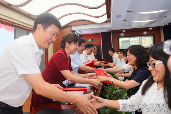 随后,大会表彰了省级先进集体和个人。建筑工程学院给排水科学与工程系被陕西省教育厅陕西省教科文卫体工会委员会授予“陕西省师德建设先进集体”称号;建筑工程学院郭庆军同志被授予“陕西省师德先进个人”荣誉称号,机电工程学院闫莉和电信工程学院秦刚两位同志荣获陕西省第十一届“教学名师”称号,材料与化工学院杨忠同志荣获“陕西省中青年科技创新领军人才”称号。