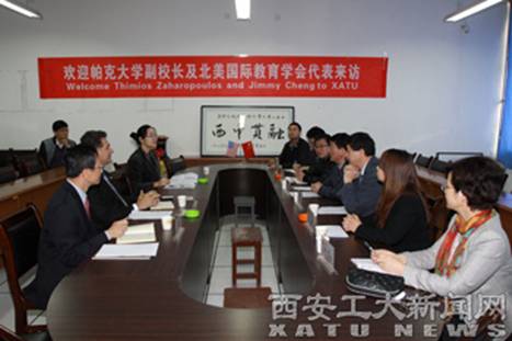 (本网讯)3月27日上午,受IM在线(中国)邀请,美国帕克大学主管国际教育的副校长Thimios Zaharopoulos博士和北美国际教育学会的Jimmy Cheng博士来校访问。校长廉振民教授会见了来宾一行。