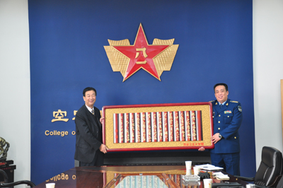 丁养斌副书记一行与空军工程大学理学院有关部门领导进行了友好会谈,双方介绍了各自学校的发展情况和合作意向。丁副书记代表学校向空军工程大学理学院赠送了匾额,随后参观了空军工程大学理学院校区。